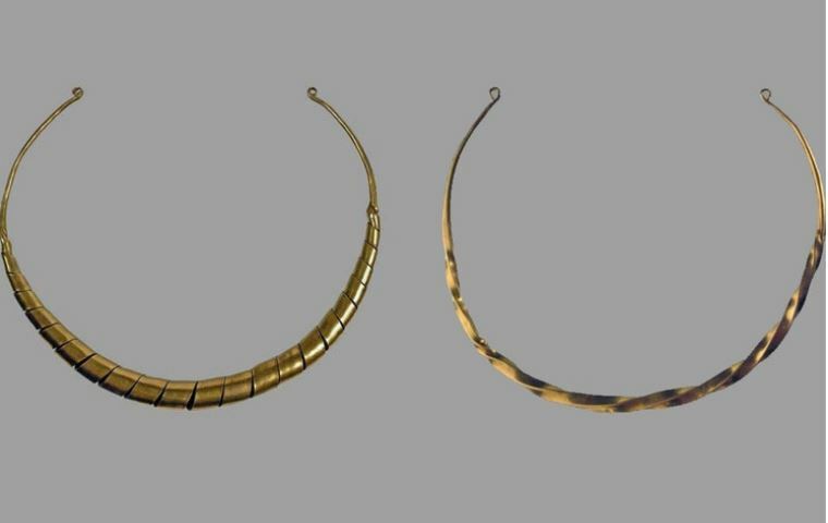 Шийні гривни 12–13 ст, знайдені біля села Сахнівка, Черкаська область. Фото Музею історичних коштовностей України