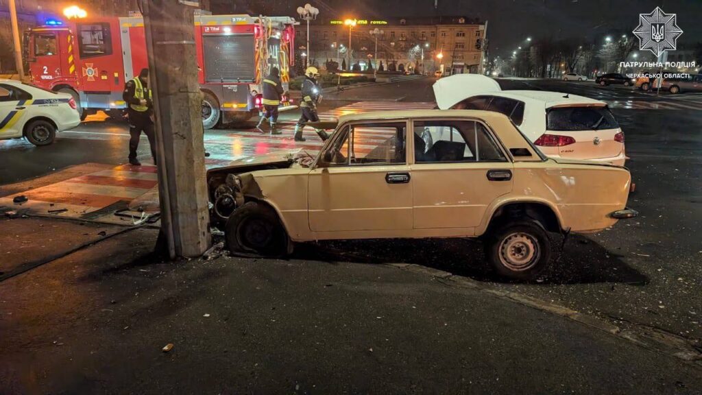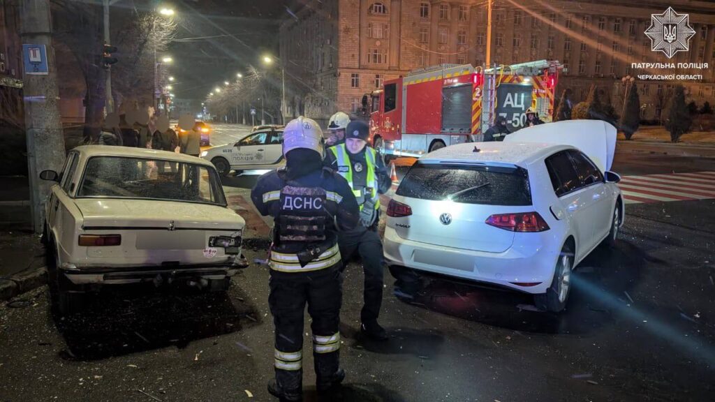 На бульварі Шевченка в Черкасах зіштовхнулися ВАЗ та Volkswagen вночі 17 березня.