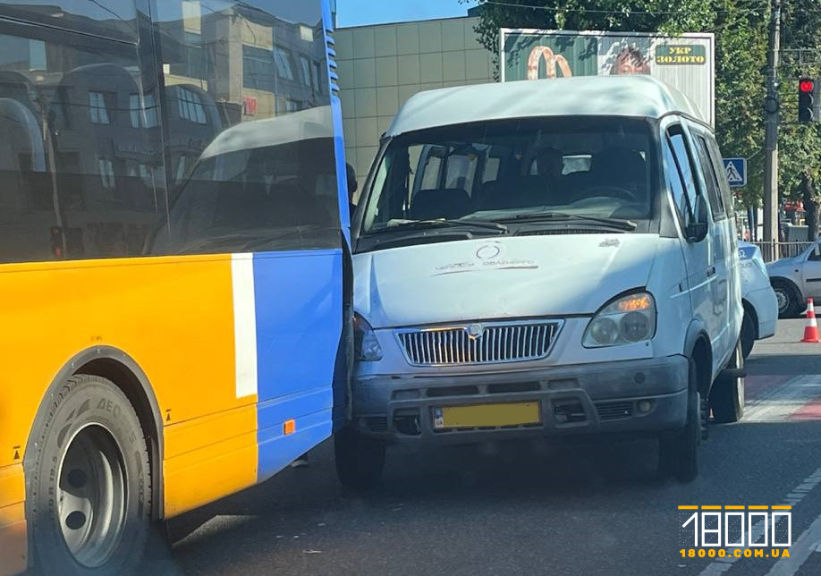 На перехресті вулиць Смілянської та Благовісної вранці 5 вересня сталася аварія. Там «ГАЗ 32213» зіткнувся з автобусом «VDL Ambassador».