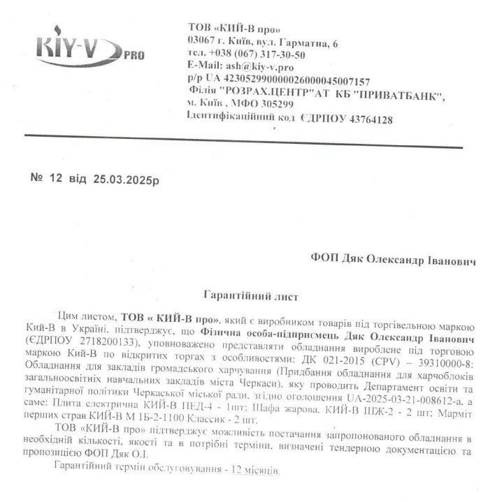 Департамент освіти та гуманітарної освіти Черкаської міської ради 16 травня уклав договір на постачання кухонного обладнання до однієї з найбільших шкіл міста №34. Договір за результатом проведених відкритих торгів уклали з місцевим підприємцем Олександром Дяком, який є депутатом Черкаської районної ради від політичної сили «Слуга народу».