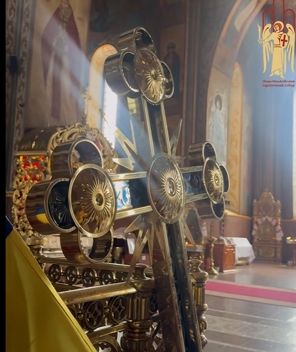У Свято‐Михайлівському соборі освятили хрест, який встановили на дзвіницю