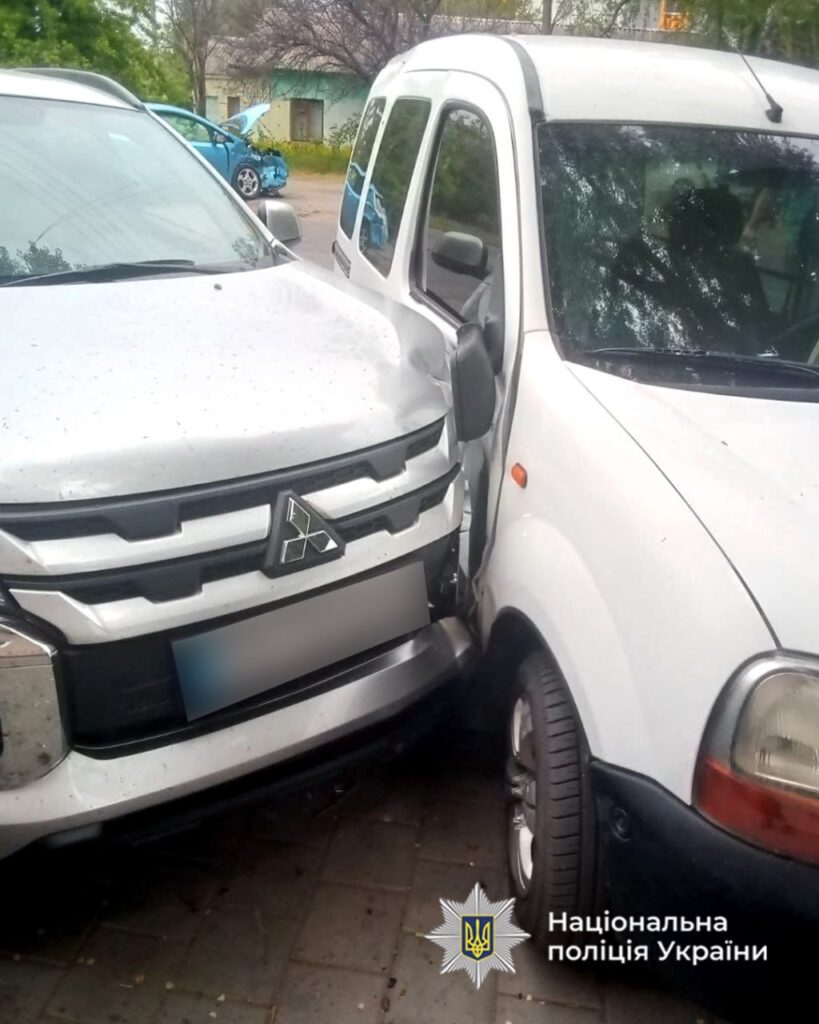 Поліцейські встановили, що 34‐річний водій «Nissan Leaf» не надав перевагу в русі та зіткнувся з автомобілем «Opel Zafira». Від удару другий автомобіль виїхав на тротуар, де пошкодив два припаркованих авто.