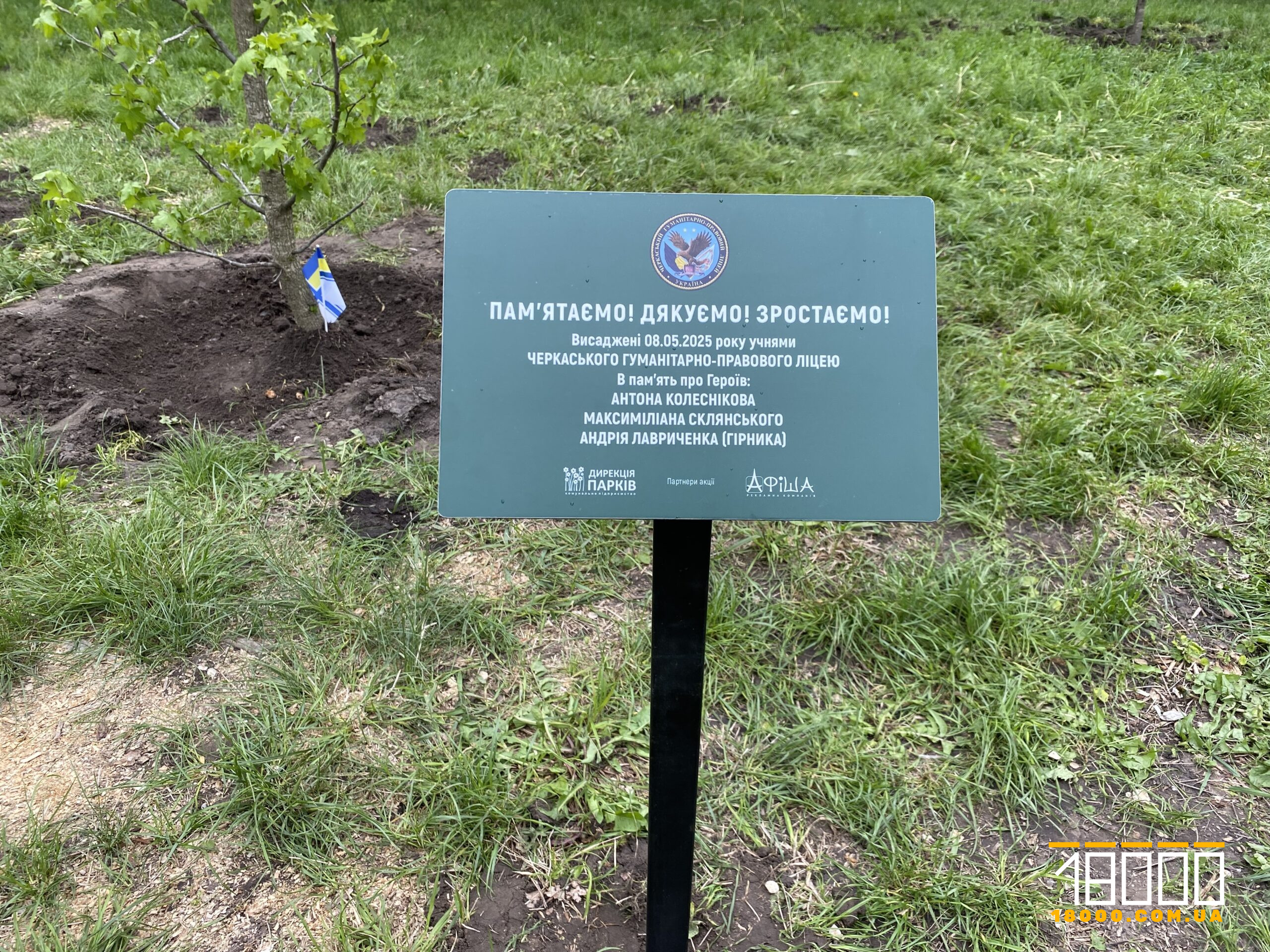 У Черкасах в Соборному парку учні гуманітарно‐правового ліцею висадили дерева на честь загиблих випускників навчального закладу.