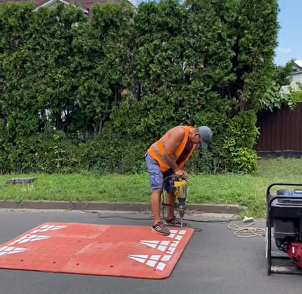У Черкасах комунальники встановлюють засоби заспокоєння дорожнього руху поблизу школи №29.