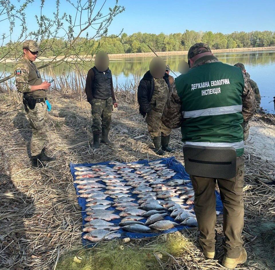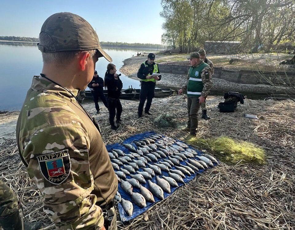 Інспектори, під час патрулювання прибережної смуги Дніпра, в межах села Тубільці Черкаського району помітили двох осіб на дерев’яному човні. Чоловіки незаконно виловлювали рибу сітками. Інцидент стався близько 5‐ої години ранку 22 квітня.