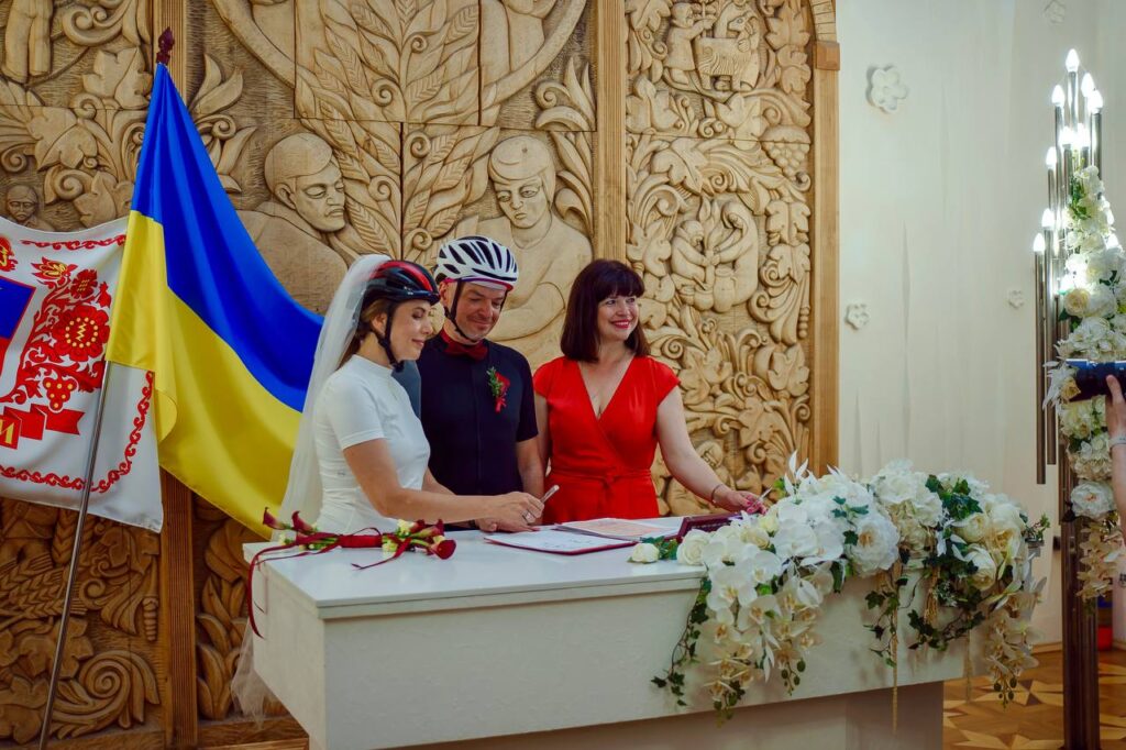 У Черкасах молодята одружилися у велосипедній формі та шоломах