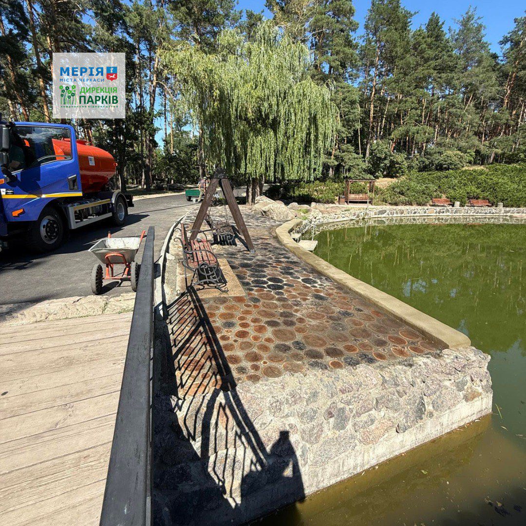 Комунальники реставрували покриття біля озера із русалонькою у Сосновому бору у Черкасах. Роботу виконали з екологічних матеріалів.