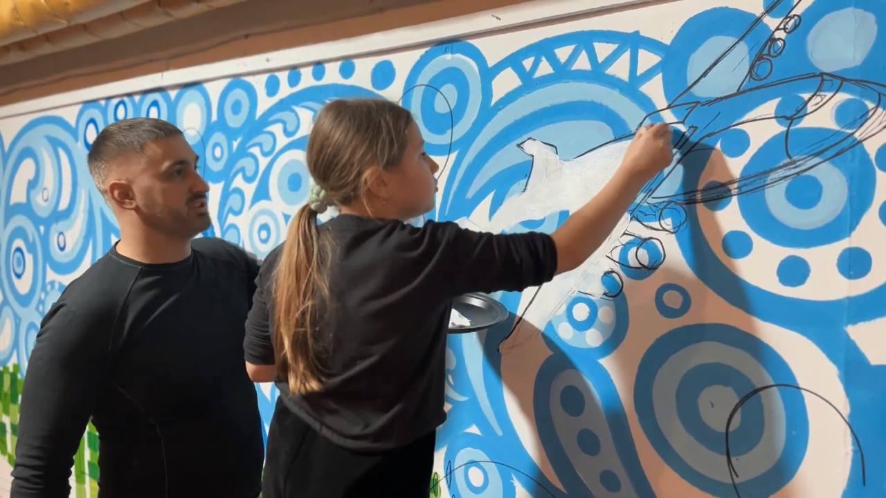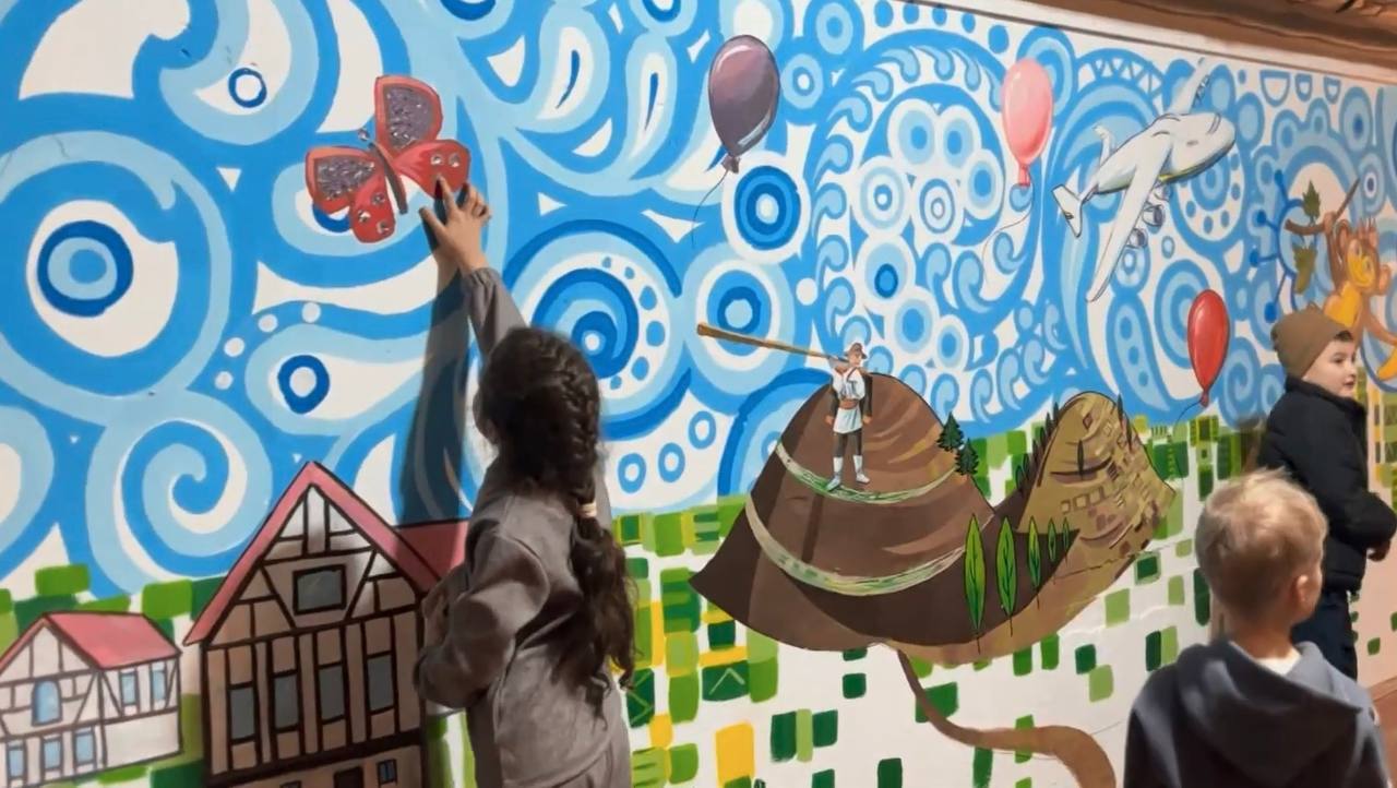 Малюнки в укритті спільно створювали місцеві митці, студенти, ізраїльська художниця Зоя Север.