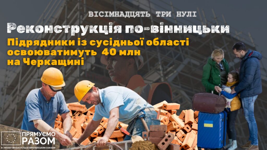 Компанія із Вінниці здобула право будувати на Черкащині коштовний прихисток для внутрішньо переміщених осіб. Він обійдеться бюджету у понад 40 млн гривень. Левова частина коштів має бути залучена в межах програми підтримки відбудови України за гроші європейських донорів.