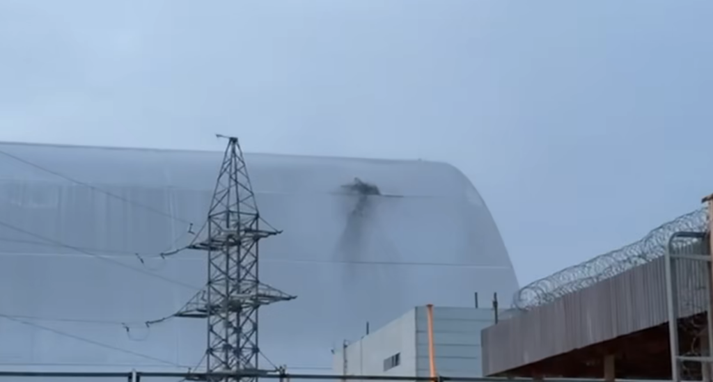 During the night of 13–14 Feb, at around 01:50, IAEA team at the Chornobyl site heard an explosion coming from the New Safe Confinement, which protects the remains of reactor 4 of the former Chornobyl NPP, causing a fire. They were informed that a UAV had struck the NSC roof. pic.twitter.com/Ee5NSRgDo8