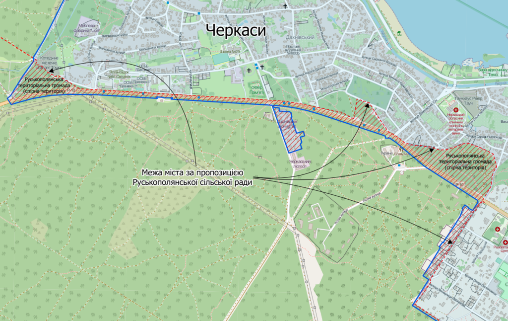 Директор департаменту архітектури та містобудування Черкаської міської ради Артур Савін у коментарі «18000» розповів, що місто хоче приєднати до себе землі, які розташовані між вулицями Руставі та Момота. У планах обласного центру також розширення аеропорту. Йдеться приблизно про 600 гектарів земель, які нині належать Руській Поляні.
