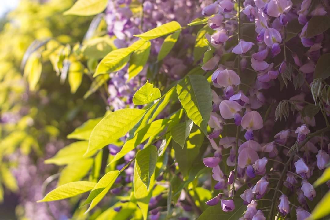 Цвітіння гліцинії розпочинається наприкінці березня.