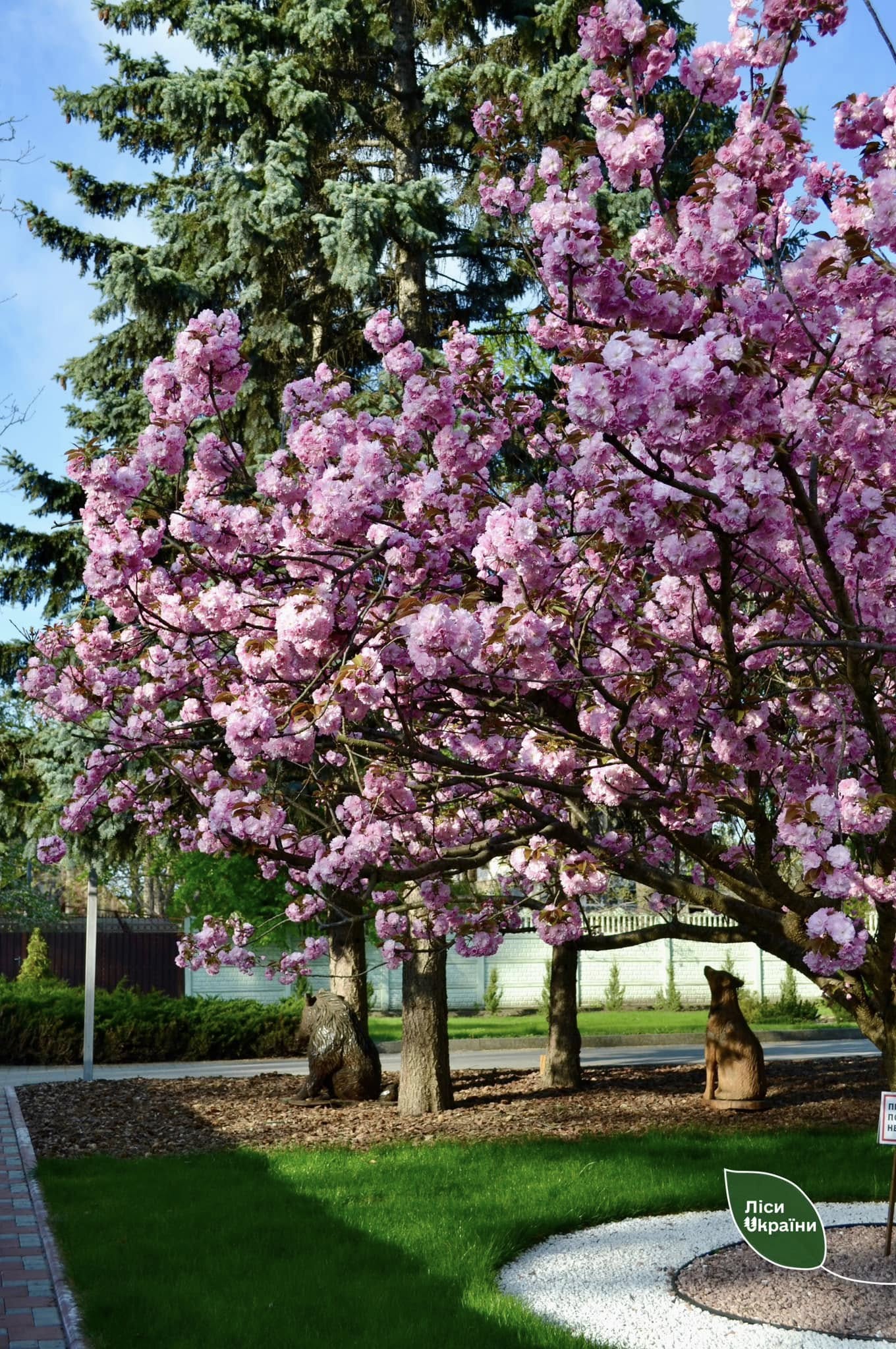 Це дерево з Японії – вишня дрібнопильчаста. Хоча там будь‐яку вишню називають сакура. Ба більше, можуть сплутати зі сливою, черемхою чи навіть із трилопатевим мигдалем.