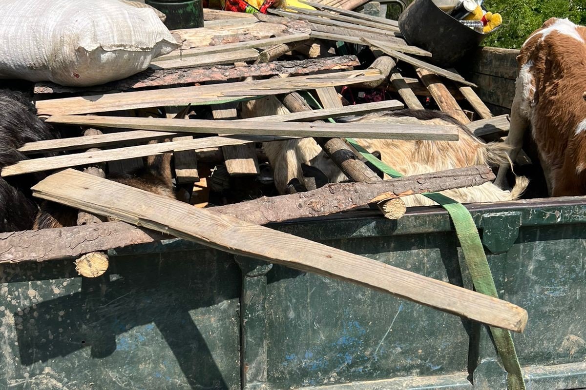 Як йдеться в дописі, чоловіки обладнали кузов вантажівки «ГАЗ‐66» подвійним днищем, куди залізли військовозобов’язані. Зверху перевізник завантажив речі, необхідні для облаштування місця проживання пастухів на полонині, а також – три свині, дві кози та одне теля.
