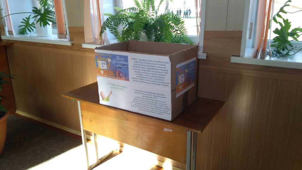Скринька для збору старої техніки у школі. Фото: з фейсбук‐сторінки Григорія Заспи