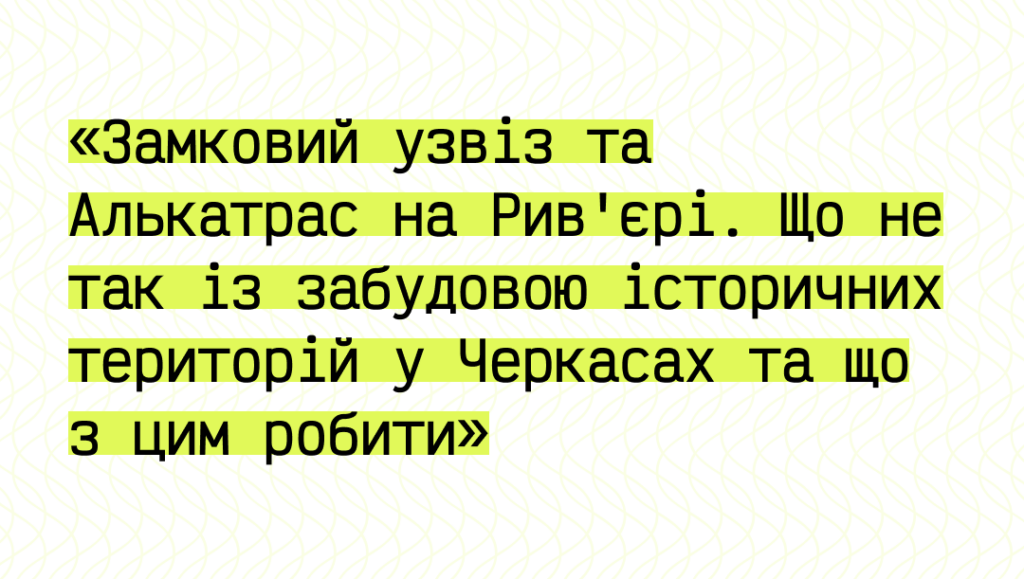 Дискусія на тему «Замковий узвіз та Алькатрас на Рив’єрі. Що не так із забудовою історичних територій у Черкасах та що з цим робити» триватиме з 18:30 до 20:30 години.