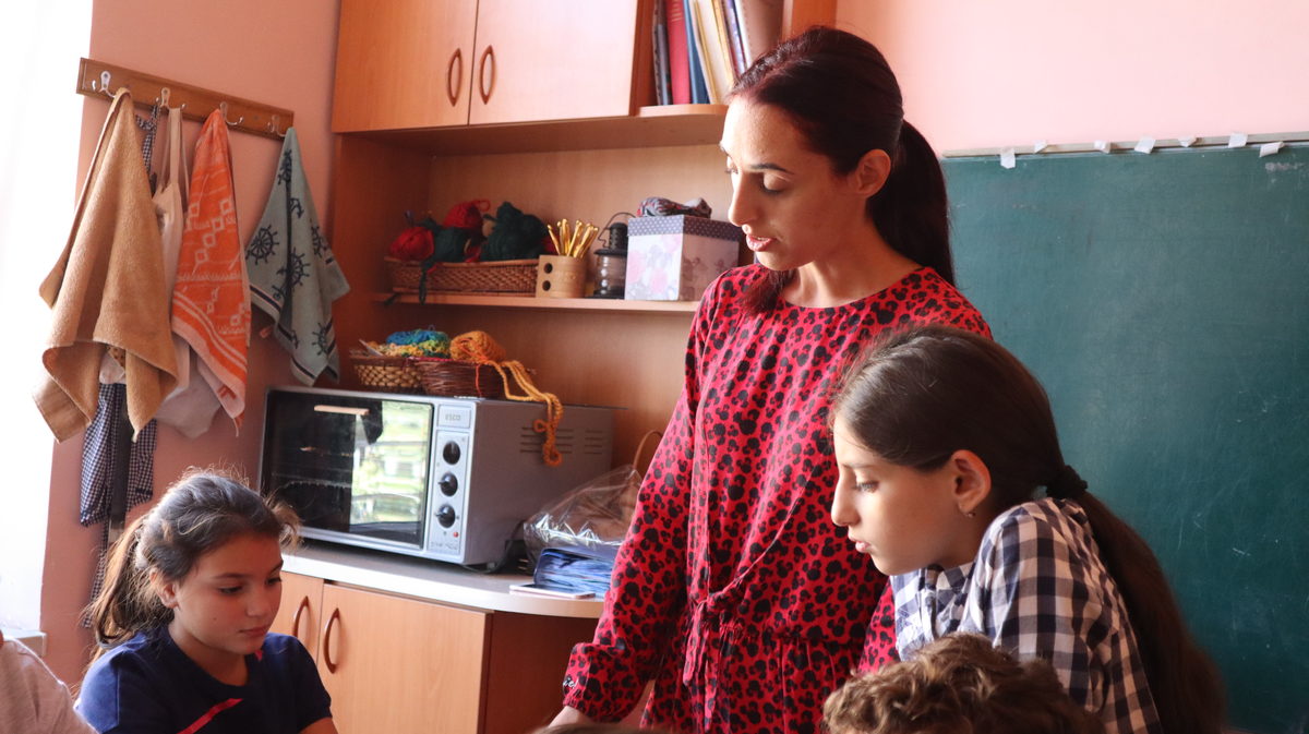 За дверима шостого класу дівчата та хлопчики в’яжуть шкарпетки. Класний керівник Анаіт Татевосян переконана: ручна праця, яка приносить корисні результати, допомагає дітям «ставати на ноги».