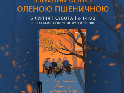 У Черкасах організують літературну зустріч з Оленою Пшеничною, авторкою книги «Там, де заходить сонце». Про це повідомили сторінці книжкового фестивалю «Змістовно» в інстаграмі. ...