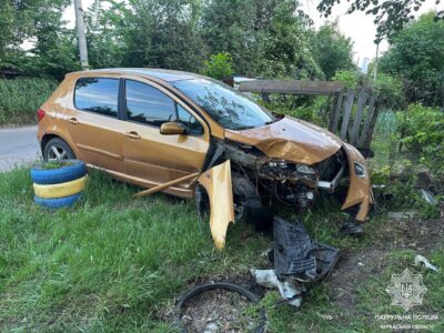 У Черкасах п’яний водій наїхав на бордюр, перекинувся та врізався в електроопору (ФОТО)