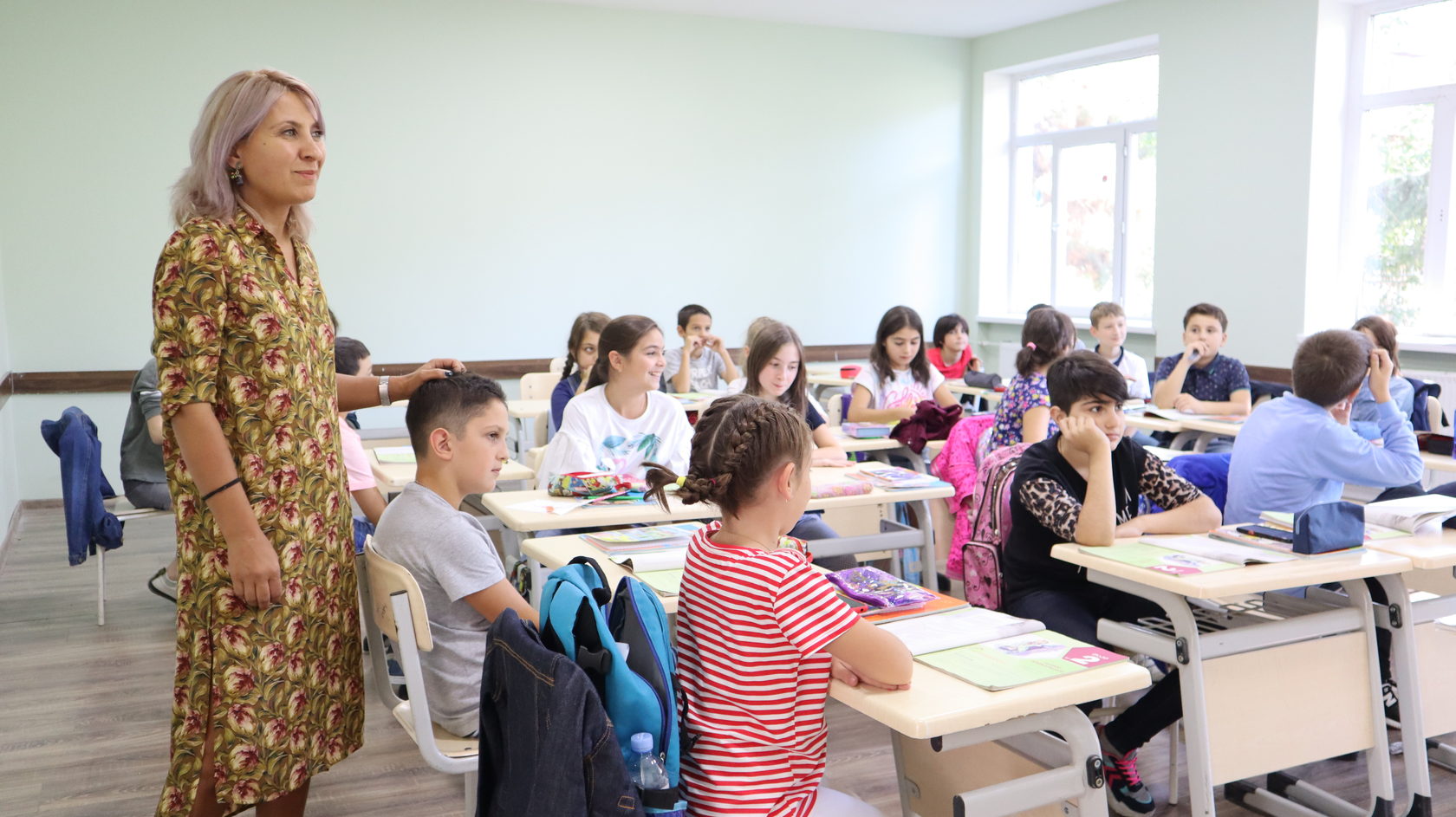 Дівчинка вільно з місця прямує до нас, без виконання звичного для державних шкіл «правила піднятої руки» та прохання дозволу в класної керівниці. Для Вергіне Мхикян це вже третій клас, який вона веде з першого до випускного. Загалом у цій школі вона вчителює вже 20 років.