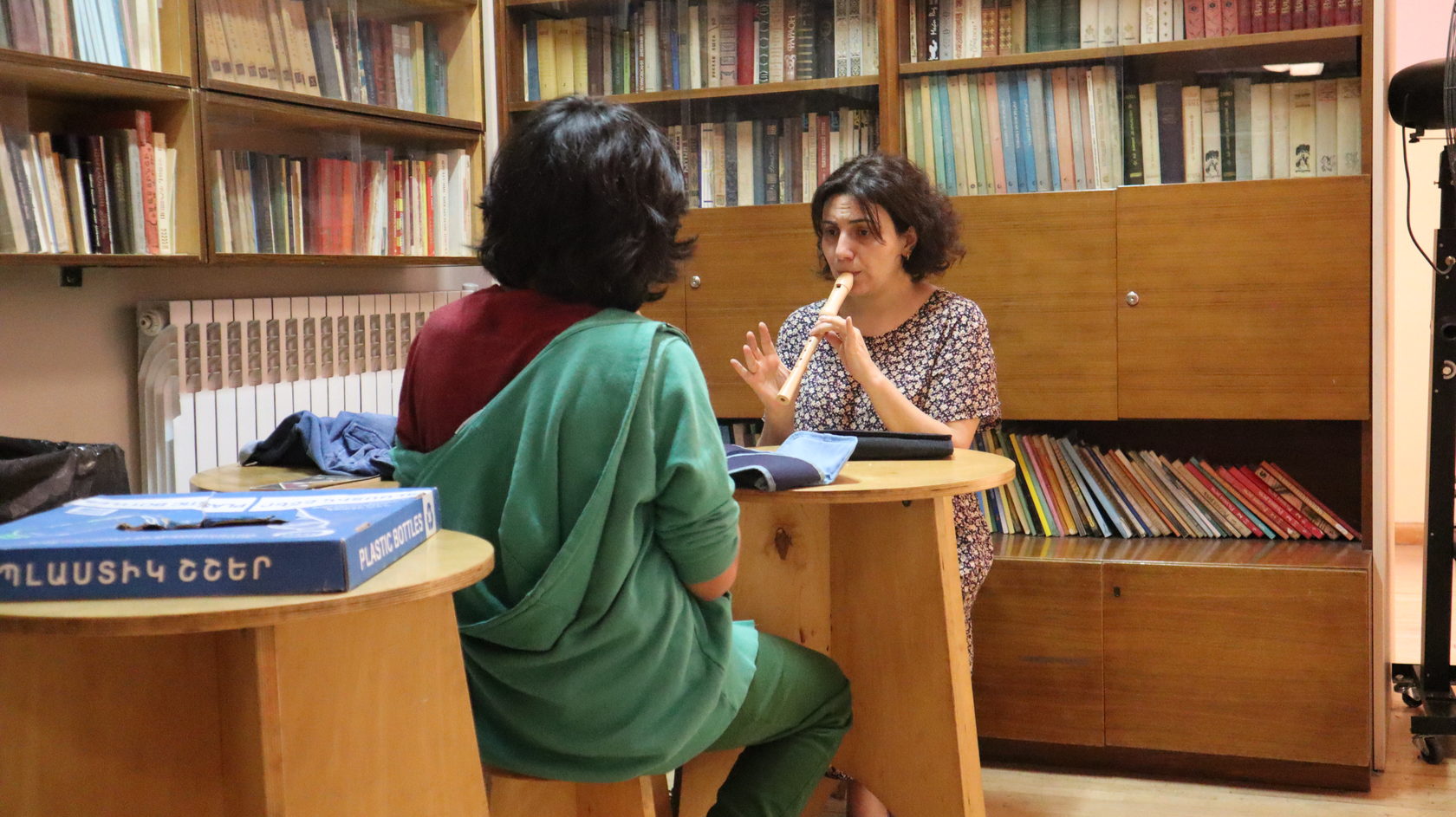 Далі прямуємо у майстерню, де старшокласники опановують ліплення з глини. Гоар Тумасян, будучи мамою учня, потрапила у школу на тимчасову роботу вчителем з малювання. Але затрималася тут на 17 років.