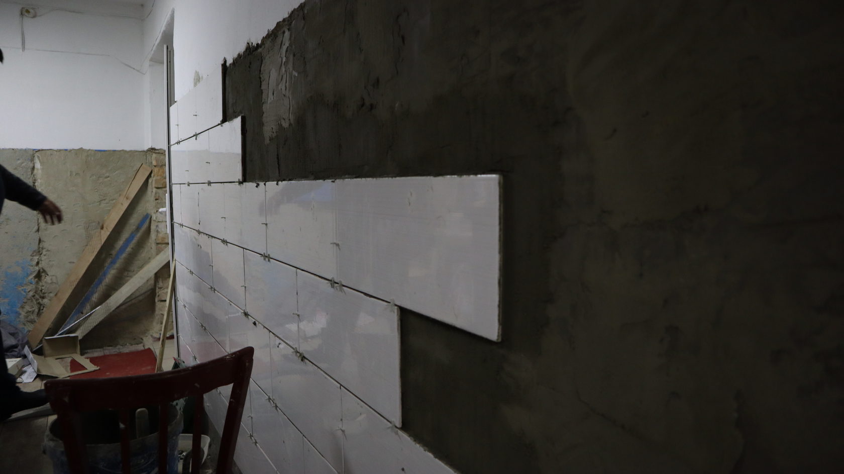 Веде коридором корпусу, в якому нині триває ремонт. Там електрик закладу кладе плитку. На перший погляд професійно. Каже: зголосився допомогти, аби поліпшити умови для підопічних.