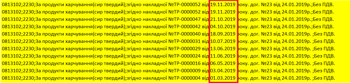 Звичайно, що можливо підприємець врахував ціну ледь не щоденної доставки, проте, по факту, як свідчить інформації із системи Spending.gov.ua, постачання продукту до закладу здійснюється далеко нещоденно, а фактично раз на кілька тижнів, разом з іншими продуктами.